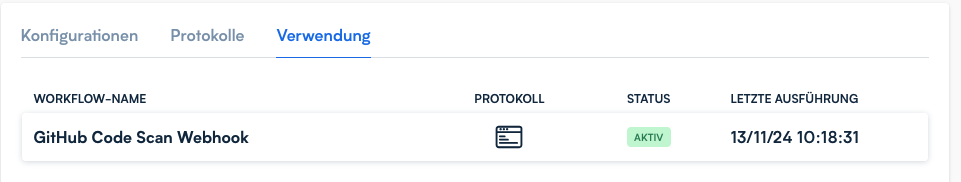 Der letzte Reiter *Verwendung* zeigt Ihnen, in welchen Workflows dieser Endpunkt in Verwendung ist.