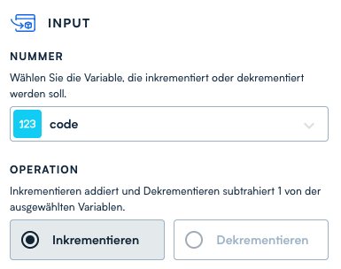 Die Option *Inkrementieren* erhöht die Variable um eins, *Dekrementieren* verringert sie um eins.
